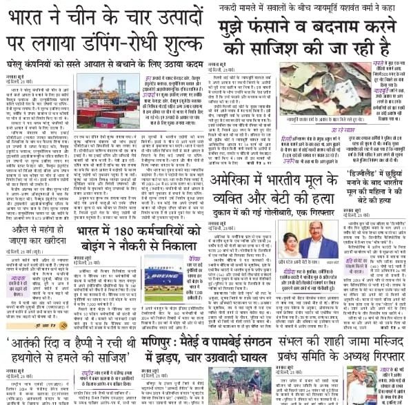 संभल की शाही जामा मस्जिद प्रबंध समिति के अध्यक्ष की गिरफ्तारी भी अखबरों की सुर्खी है। वहीं देशबन्धु ने वक्फ संशोधन विधेयक के खिलाफ ऑल इंडिया मुस्लिम पर्सनल लॉ बोर्ड के देश व्यापी आन्दोलन की घोषणा को पहले पन्ने पर जगह दी है।