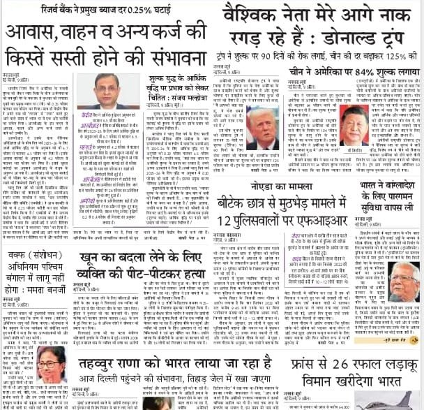 अमर उजाला, दैनिक ट्रिब्यून और राजस्थान पत्रिका की सुर्खी है- ट्रम्प के टैरिफ से 90 दिन की राहत, जवाबी कार्रवाई न करने वाले देशों को छूट।