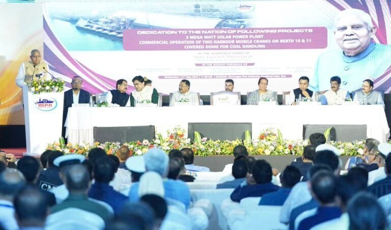 गोवा के मोरमुगाओ बंदरगाह में 3 मेगावाट सौर ऊर्जा संयंत्र, दो हार्बर मोबाइल क्रेन और कोयला हैंडलिंग के लिए कवर डोम के वाणिज्यिक परिचालन का उद्घाटन करते हुए जगदीप धनखड़ ने कहा, “आज का भारत वैश्विक आर्थिक शक्ति और समुद्री शक्ति दोनों के रूप में उभर रहा है, जो शांति, सतत विकास और प्रगति के प्रति प्रतिबद्ध है। हम पहले ही दुनिया की चौथी सबसे बड़ी अर्थव्यवस्था बन चुके हैं और इंडो-पैसिफिक क्षेत्र में एक अग्रणी शक्ति के रूप में उभर रहे हैं। हमारे समुद्र आज हमारे लिए पहले से कहीं अधिक महत्त्वपूर्ण हैं — आर्थिक दृष्टि से, सुरक्षा के लिए और व्यापार को बनाए रखने के लिए।”
