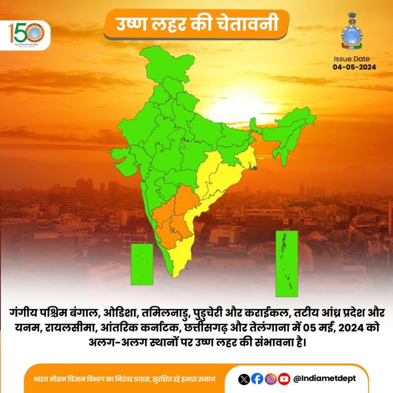 मौसम विभाग ने कहा कि अगले दो दिनों में पश्चिम बंगाल के गांगेय क्षेत्र तेलंगाना, कर्नाटक, तटीय आंध्र प्रदेश, रायलसीमा, झारखंड और तमिलनाडु में भीषण गर्मी का प्रकोप रहेगा। मध्य महाराष्ट्र, मराठावाड़ा, सौराष्ट्र, कच्छ और पश्चिम राजस्थान में भी अगले दो-तीन दिन यहीं स्थिति जारी रह सकती है। इस बीच, अगले पांच दिनों में पूर्वोत्तर भारत में कई जगहों पर गरज के साथ हल्की से मध्यम वर्षा हो सकती है। दिल्ली में, आंशिक रूप से बादल छाए रहने और तेज हवाओं के साथ धूल भरी आंधी चलने की संभावना व्यक्त की गई है। अधिकतम तापमान 38 और और न्यूनतम तापमान 22 डिग्री के आसपास रिकार्ड किया जा सकता है।