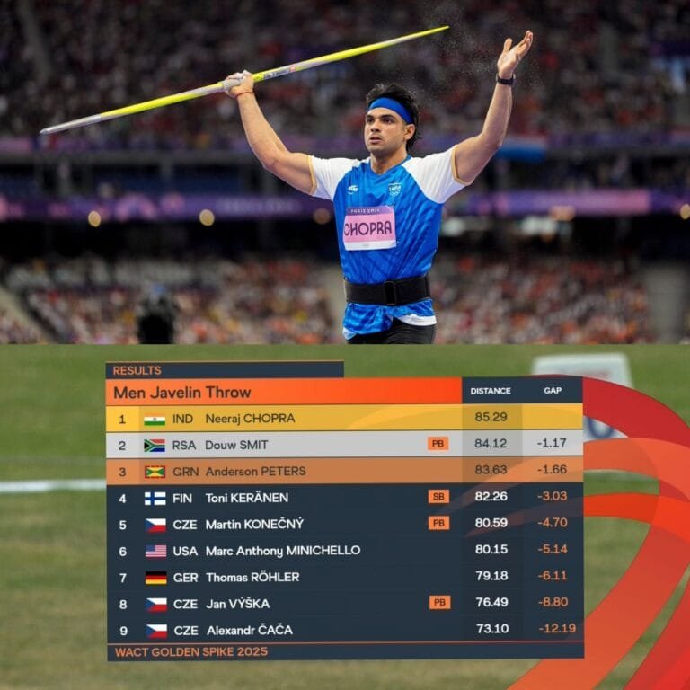 दो बार के ओलिम्पिक पदक विजेता नीरज चोपड़ा ने ओस्ट्रावा गोल्डन स्पाइक प्रतियोगिता में स्वर्ण पदक जीता है। नीरज ने सर्वश्रेष्ठ प्रयास में 85 दशमलव दो नौ मीटर दूर भाला फेंका। प्रतियोगिता में दक्षिण अफ्रीका के दोउ स्मित दूसरे और ग्रेनाडा के एंडरसन पीटर्स तीसरे स्थान पर रहे। नीरज का यह लगातार दूसरा खिताब है। इससे पहले शानदार प्रदर्शन करते हुए पिछले सप्ताह पैरिस डायमंड लीग में नीरज ने अपने करियर में पहली बार 90 मीटर से अधिक दूर भाला फेंका था। अब नीरज चोपड़ा भारत की पहली ग्लोबल जेवलिन प्रतियोगिता में खेलेंगे। यह प्रतियोगिता 5 जुलाई से बेंगलुरू के श्री कांतीरव स्टेडियम में होगी।