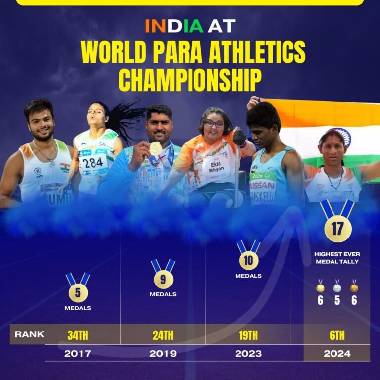 प्रधानमंत्री मोदी ने एक्स पर लिखा,‘विश्व एथलेटिक्स चैम्पियनशिप में भारतीय पैरा एथलीटों के शानदार प्रदर्शन से मैं खुश हूं। सात साल में 34वें से छठे स्थान पर पहुंचना बड़ी उपलब्धि है। भारत ने 17 पदक जीतकर अपना सर्वश्रेष्ठ प्रदर्शन किया।’