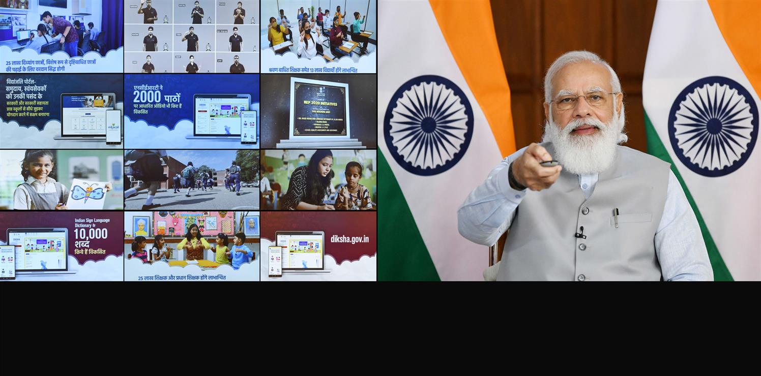 प्रधानमंत्री नरेन्द्र मोदी ने आज वीडियो कॉन्फ्रेंसिंग के माध्यम से शिक्षक पर्व के पहले सम्मेलन को संबोधित किया।उन्होंने भारतीय सांकेतिक भाषा शब्दकोश (श्रवण बाधितों के लिए ऑडियो और पाठ आधारित सांकेतिक भाषा वीडियो, ज्ञान के सार्वभौमिक डिजाइन के अनुरूप), बोलने वाली किताबें (टॉकिंग बुक्स, नेत्रहीनों के लिए ऑडियो किताबें), सीबीएसई की स्कूल गुणवत्ता आश्वासन और आकलन रूपरेखा,निपुण भारत के लिए ‘निष्ठा’ शिक्षक प्रशिक्षण कार्यक्रम और विद्यांजलि पोर्टल (विद्यालय के विकास के लिए शिक्षा स्वयंसेवकों/ दाताओं/ सीएसआर योगदानकर्ताओं की सुविधा के लिए) का भी शुभारंभ किया।