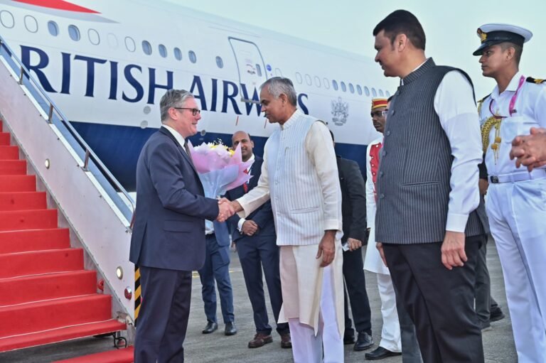 ब्रिटेन के प्रधानमंत्री कीर स्टार्मर आज दो दिवसीय यात्रा पर मुंबई पहुंचे। प्रधानमंत्री स्टार्मर की यह भारत की पहली आधिकारिक यात्रा है। विदेश मंत्रालय ने कहा कि प्रधानमंत्री स्टार्मर और प्रधानमंत्री नरेन्द्र मोदी मुंबई में कल विजन-2035 के विभिन्न पहलुओं में भारत-ब्रिटेन व्यापक रणनीतिक साझेदारी के विभिन्न क्षेत्रों में प्रगति की समीक्षा करेंगे।