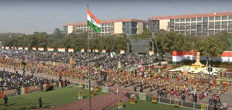 राष्ट्रपति द्रौपदी, इंडोनेशिया के राष्ट्रपति प्रबोवो सुबियांतो, प्रधानमंत्री नरेन्द्र मोदी तथा कई अन्य गणमान्य लोगों की मौजूदगी में रविवार को देश के 76वें गणतंत्र दिवस पर परेड समारोह कर्तव्य पथ पर शुरू हुआ।