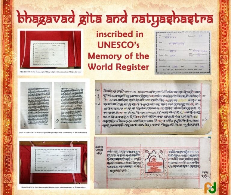 इस ऐतिहासिक उपलब्धि के साथ, यूनेस्को मेमोरी ऑफ द वर्ल्ड रजिस्टर में अब कुल 14 भारतीय ग्रंथ हो गए हैं। उत्कृष्ट मूल्यों वाली दस्तावेजी विरासत को संरक्षित करने की यह एक वैश्विक पहल है। श्रीमद्भगवद्गीता और भरत मुनि के नाट्यशास्त्र को ऋग्वेद, शांतिनाथ चैत्र और गिलगित पांडुलिपि के साथ सूची में शामिल किया गया है। श्रीमद्भगवद्गीता भगवान कृष्ण और अर्जुन के बीच एक पवित्र संवाद है, दूसरी ओर, प्राचीन ऋषि भरत मुनि द्वारा रचित नाट्यशास्त्र रंगमंच, कला और नृत्य जैसी प्रदर्शन कलाओं पर एक आधारभूत ग्रंथ है।