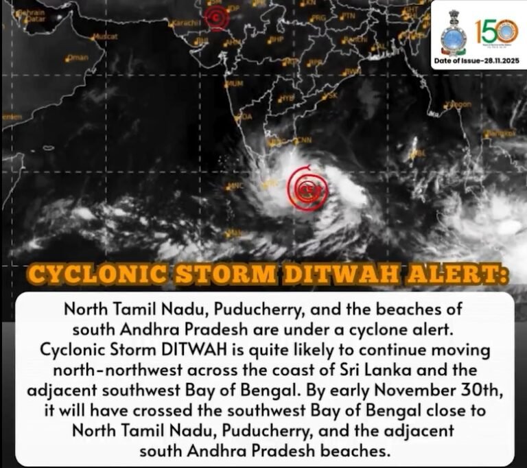 वहीं मौसम विभाग ने पुद्दुचेरी, आंध्र प्रदेश और कराइकल में मूसलाधार वर्षा का अनुमान व्यक्त किया है। इस बीच, राष्ट्रीय राजधानी दिल्ली और आसपास क्षेत्रों में वायु गुणवत्ता बेहद खराब श्रेणी में बनी हुई है।