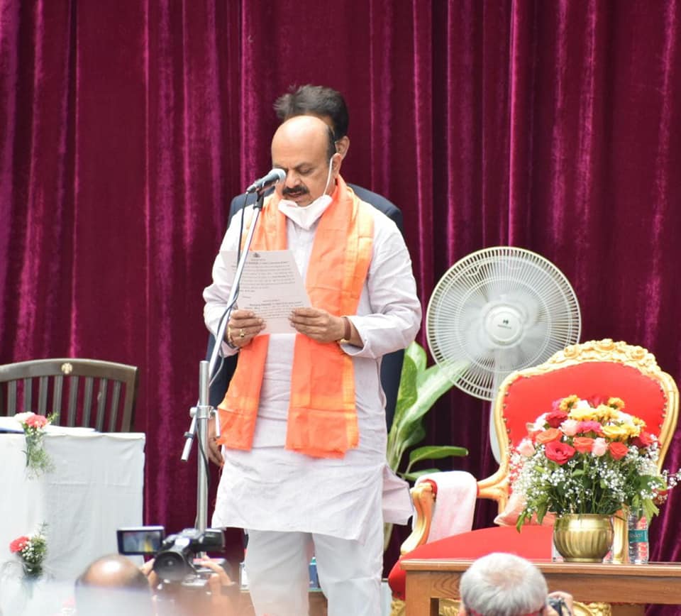 बसवराज बोम्मई ने कर्नाटक के मुख्यमंत्री पद की शपथ ली। केंद्रीय मंत्री धर्मेंद्र प्रधान ने कल विधायक दल की बैठक के बाद घोषणा की कि भाजपा नेता बसवराज बोम्मई को विधायक दल का नेता चुन लिया गया है। बी. एस. येदियुरप्पा ने बढ़ती उम्र की कठिनाइयों के कारण पद छोड़ दिया था। विधायक दल का नेता चुने जाने के बाद बसवराज बोम्मई ने राज्यपाल थावर चंद गहलोत से मुलाकात की। राज्यपाल ने नए नेता को आज पद की शपथ लेने का न्योता दिया।