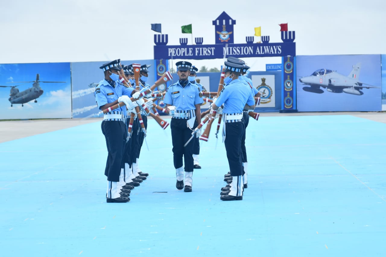 पिलेटस पीसी-7 एमके-II, हॉक्स, किरन और चेतक के साथ-साथ सारंग, सूर्यकिरन विमानों के फ्लाईपास्ट और आकाश गंगा स्काई डाइविंग टीम के प्रदर्शन से एक शानदार स्नातक परेड में रंग भर दिए।