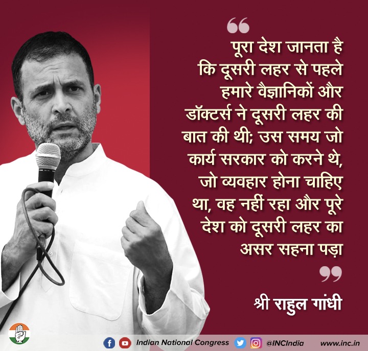 राहुल गांधी ने कहा कि कोविड महामारी की पहली और दूसरी लहर का प्रबंधन आवश्यकताओं के अनुरूप नहीं था। राहुल गांधी ने इस पत्र में कल देशभर में एक ही दिन में सर्वाधिक टीके लगाये जाने की सराहना भी की है। कांग्रेस नेता ने उम्मीद जताई कि सरकार पूरी आबादी को टीका लगाने तक इसी तरह का काम करती रहेगी।