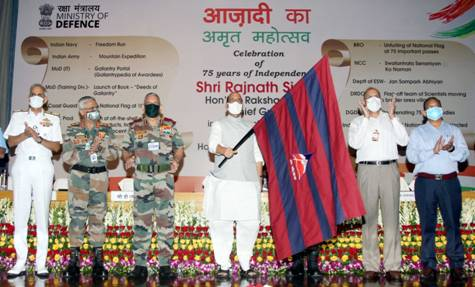 रक्षा मंत्री राजनाथ सिंह ने नई दिल्ली में आजादी का अमृत महोत्सव के अवसर पर वीडियो कॉन्फ्रेंस के जरिए आज अनेक कार्यक्रमों की शुरूआत की। इनमें अनेक स्थानों पर राष्ट्रीय ध्वजारोहण, उत्पाद और सुविधा केंद्रों का शुभारंभ, प्रतिमाओं को स्वच्छ करने, जनसंपर्क अभियान तथा शौर्य गाथाओं पर आधारित पुस्तकों का विमोचन शामिल है।