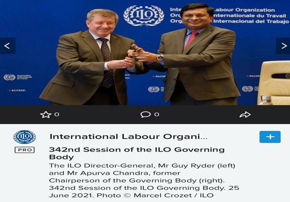 भारत ने 35 वर्षों के अंतराल के बाद अंतर्राष्ट्रीय श्रम संगठन के गवर्निंग बॉडी की अध्यक्षता संभाली थी। भारत की अध्यक्षता में अक्टूबर 2020 और मार्च 2021 में गवर्निंग बॉडी के सत्रों और जून 2021 में अंतरराष्ट्रीय श्रम सम्मेलन के 109वें सत्र का आयोजन वर्चुअल मोड में किया गया। कार्यकाल के दौरान इन बैठकों के संचालन के लिए सभी प्रकार की नई एवं नवीन प्रक्रियाएं विकसित की गईं। अपूर्व चंद्रा ने दोनों गवर्निंग बॉडी सत्रों की अध्यक्षता की, एक वर्चुअल रूप में और दूसरा जिनेवा में व्यक्तिगत रूप से। कोविड-19 का प्रतिकूल प्रभाव होने के बावजूद, गवर्निंग बॉडी की सभी बैठकों का आयोजन सफलतापूर्वक किया गया।