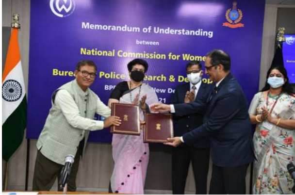 राष्ट्रीय महिला आयोग (एनसीडब्ल्यू) ने देशभर में पुलिस कर्मियों को लैंगिक समानता के प्रति संवेदनशील बनाने के लिए पुलिस अनुसंधान एवं विकास ब्यूरो (बीपीआरएंडडी) के साथ एक समझौता ज्ञापन पर हस्ताक्षर किया है। इस कार्यक्रम का शुभारंभ राष्ट्रीय महिला आयोग (एनसीडब्ल्यू) की अध्यक्ष रेखा शर्मा, पुलिस अनुसंधान एवं विकास ब्यूरो (बीपीआरएंडडी) के महानिदेशक वी.एस.के. कौमुदी, एडीजी नीरज सिन्हा और डीआईजी (प्रशिक्षण) वंदन सक्सेना ने दिल्ली के महिपालपुर में स्थित बीपीआरएंडडी के मुख्यालय में किया। दोनों संगठनों के बीच इस समझौता ज्ञापन पर हस्ताक्षर राष्ट्रीय महिला आयोग के सदस्यों और अधिकारियों की उपस्थिति में किए गए।