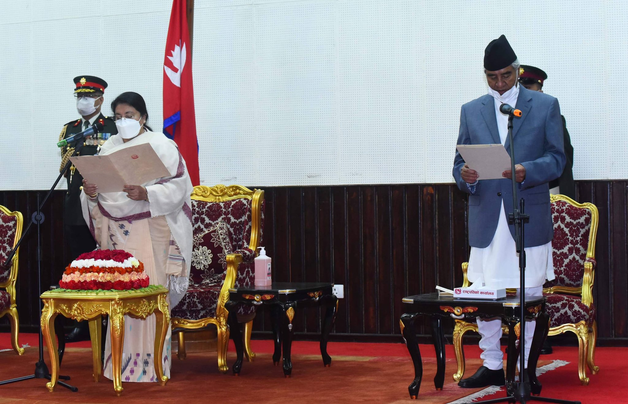 नेपाली कांग्रेस अध्‍यक्ष शेर बहादुर देउबा ने प्रधानमंत्री पद की शपथ ली