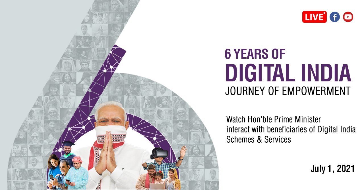 भारत को डिजिटल रूप से सशक्त समाज और ज्ञान अर्थव्यवस्था में बदलने के विजन के साथ प्रारंभ किया गया प्रमुख कार्यक्रम डिजिटल इंडिया पहली जुलाई 2021 को अपनी यात्रा के 6 वर्ष पूरी करेगा।