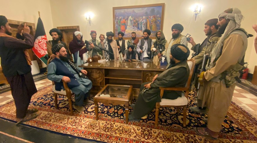अफगानिस्तान में तालिबान ने राजधानी काबुल में घुसने के कुछ घंटे बाद ही राष्ट्रपति भवन पर कब्ज़ा कर लिया। राष्ट्रपति अशरफ गनी और उपराष्ट्रपति अमरउल्ला सालेह अफगानिस्तान छोड़कर तजिकिस्तान रवाना हो गए हैं। अनेक राजनयिक अधिकारी और अन्य अफगानी लोग देश छोड़कर चले गए हैं। अफगान सरकार के मंत्री, सरकारी कर्मचारी और सैकड़ों की संख्या में अन्य लोगों से हवाई अड्डे का टर्मिनल भरा हुआ था और सब बेचैनी के साथ अपनी उड़ानों का इंतजार कर रहे थे। इनमें अनेक महिलाएं और बच्चे भी शामिल थे।