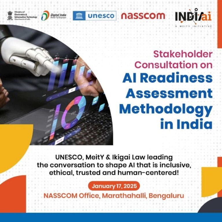 दक्षिण एशिया के लिए यूनेस्को के क्षेत्रीय कार्यालय ने इलेक्ट्रॉनिकी और सूचना प्रौद्योगिकी मंत्रालय (माइटी), भारत सरकार और कार्यान्वयन भागीदार के रूप में इकिगाई लॉ के सहयोग से भारत में एआई रेडीनेस असेसमेंट मेथडोलॉजी (आरएएम) पर दो दिवसीय हितधारक परामर्श का आयोजन किया। यह कार्यक्रम 16 तारीख को आईआईआईटी बैंगलोर और 17 तारीख को नैसकॉम एआई कार्यालय में आयोजित किया गया।